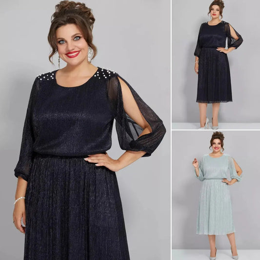 Cekinowa sukienka damska plus size z dekoltem w kształcie litery V