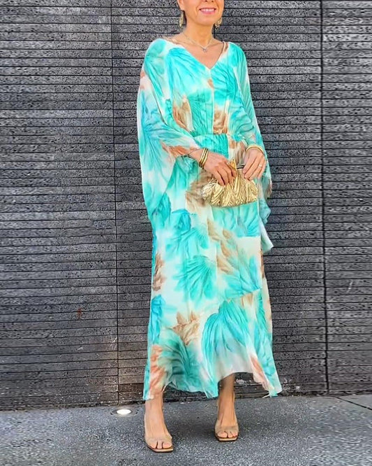 Luźna sukienka maxi z dekoltem w serek dla kobiet