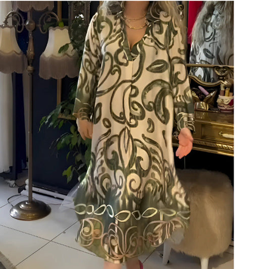 Modna luźna klasyczna sukienka z dekoltem w kształcie litery V