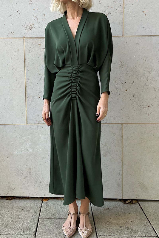 Damska elegancka sukienka z marszczonym dekoltem w kształcie litery V