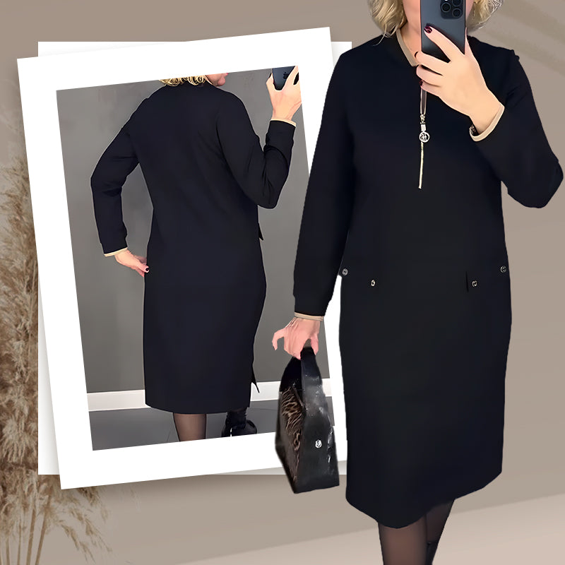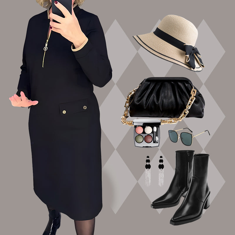 Stylowa czarna sukienka z długim rękawem dla kobiet